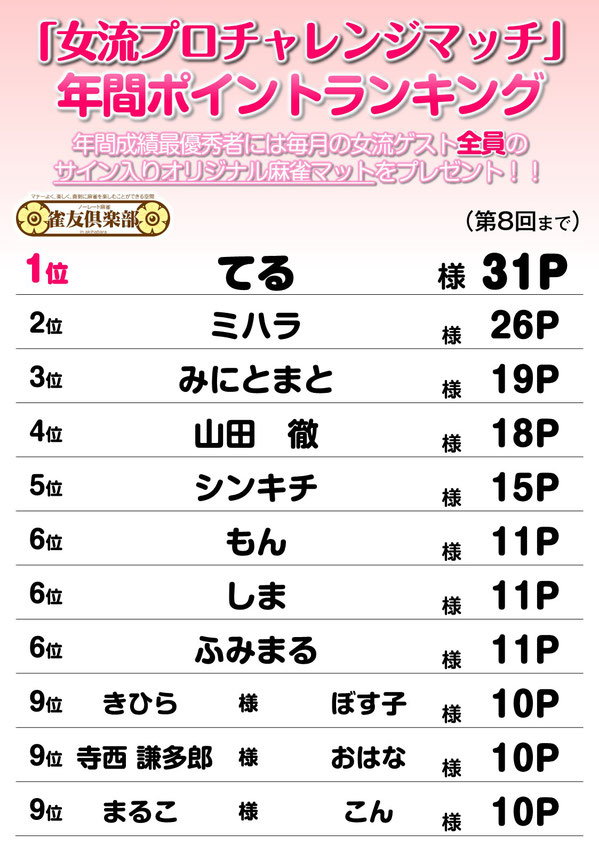 これまでのゲストプロ全員のサイン入り【麻雀マット】をプレゼント!!