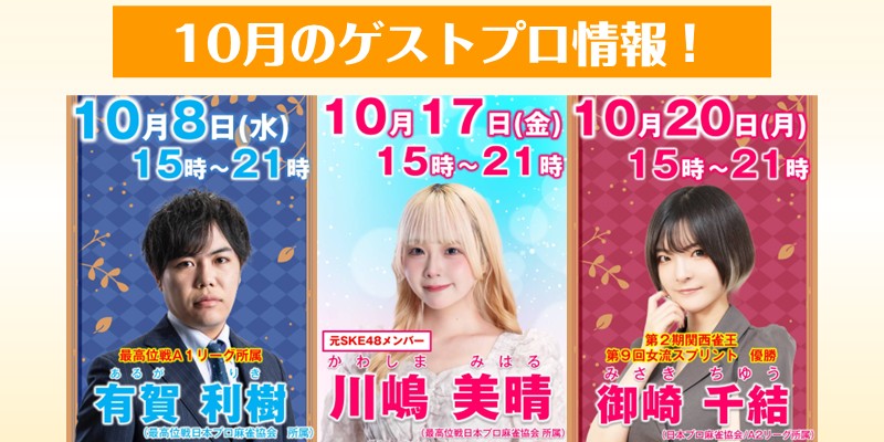 ゲストプロ3名来店✨️#有賀利樹 #川嶋美晴 #御崎千結#土田浩翔 麻雀アカデミー14・28日📒