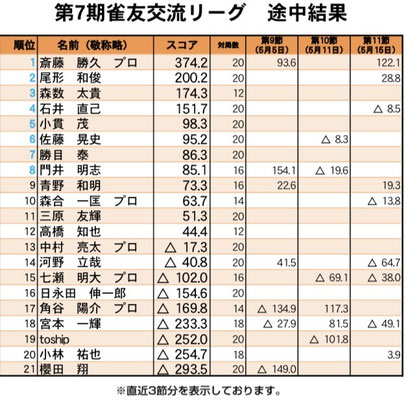 齋藤プロの今期の交流リーグは374.2ポイントで規定回数の20回になりました。