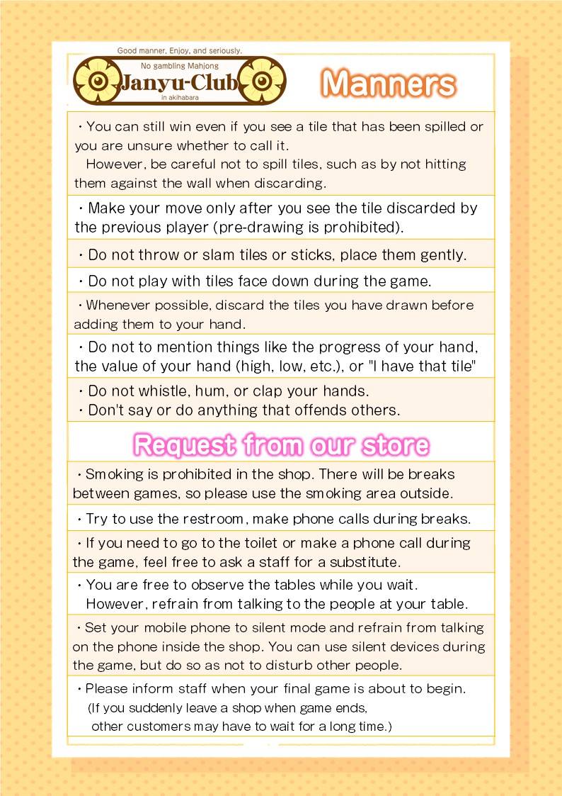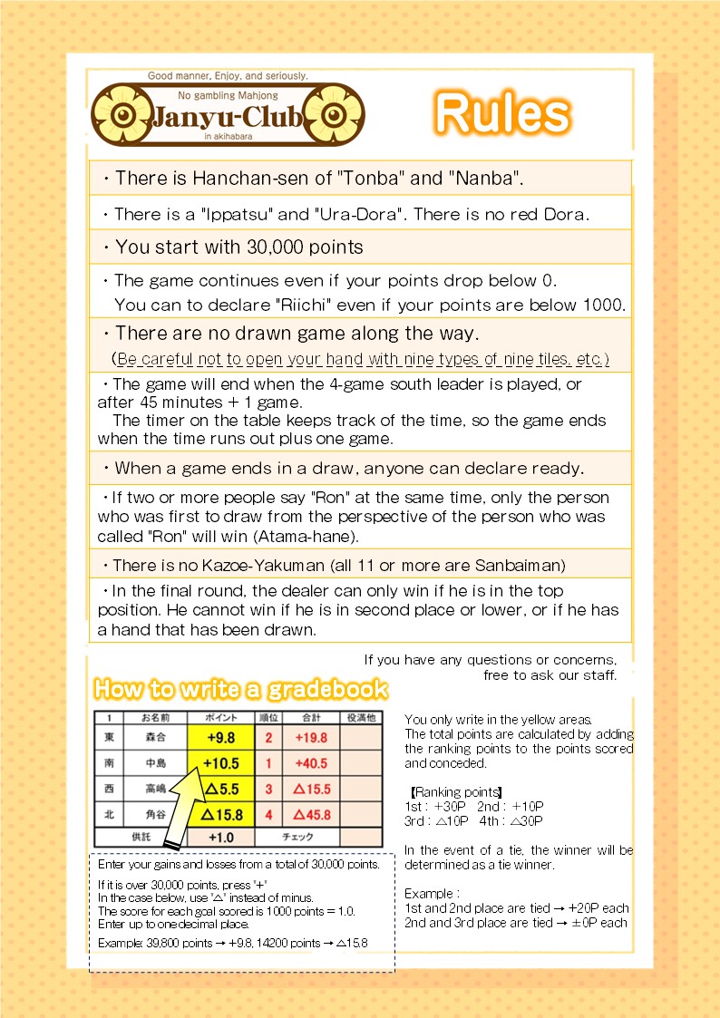 雀友倶楽部は、秋葉原駅から徒歩1分、店内禁煙のノーレート麻雀店です。初級者から上級者まで楽しく、真剣に麻雀を打つことができます。
