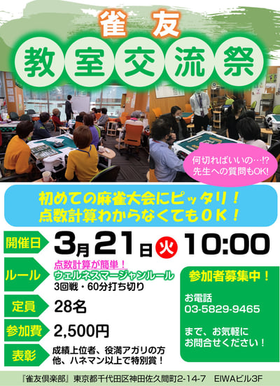麻雀がまだ覚えたての方、点数がわからない方、まだ麻雀大会に参加したことのない方にぴったり!